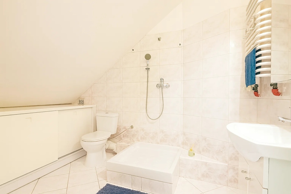 - druga łazienka (ok. 6 m2) z prysznicem, co zdecydowanie zwiększa wygodę użytkowania przestrzeni.
