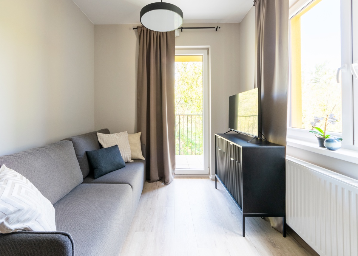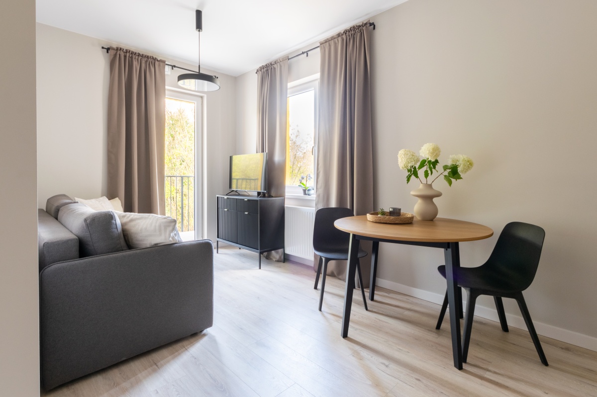 Mieszkanie 1 - pokój z wyjściem na balkon i łazienką