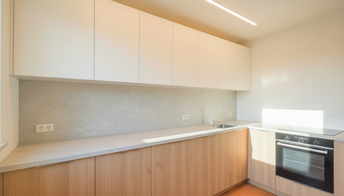• Osobna, jasna kuchnia z miejscem na pełną zabudowę i duży blat roboczy.