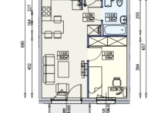 Przestronny salon z aneksem kuchennym – 18,90 m²