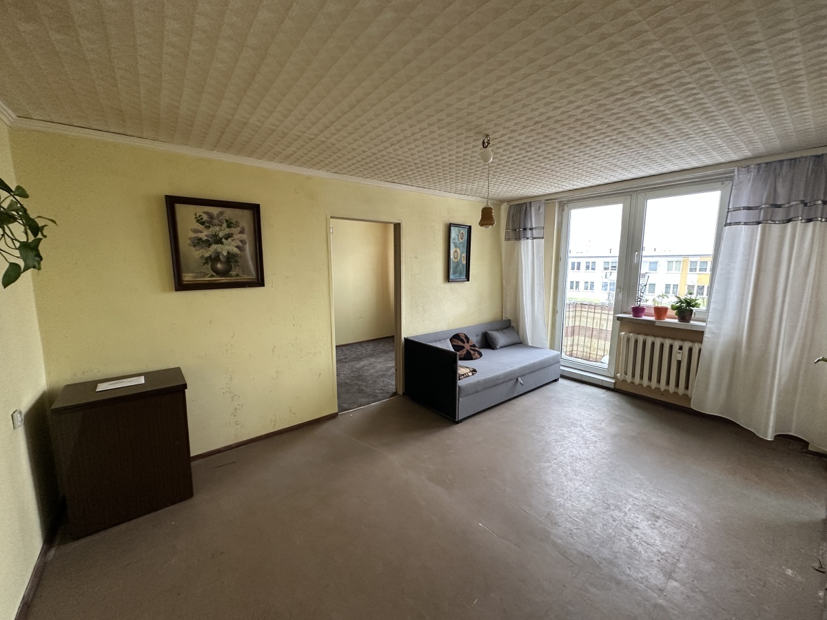 Lokal o powierzchni 40.2 m2 składający się z dwóch pokoi, łazienki z WC, kuchni, oraz przedpokoju. Z pokoju dziennego wyjście na balkon. Do mieszkanie przynależy komórka.