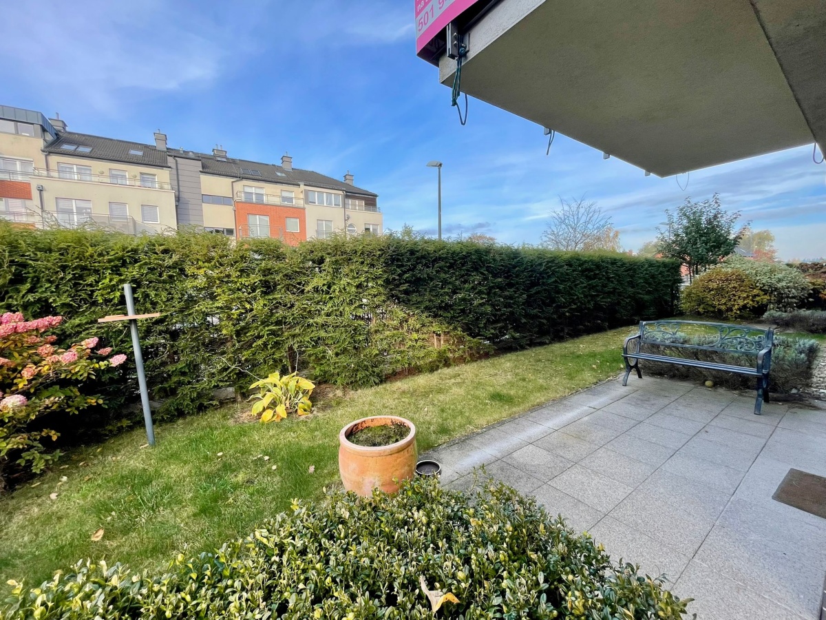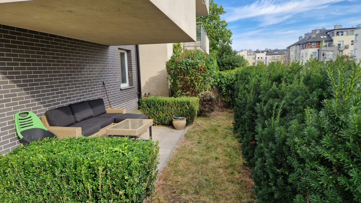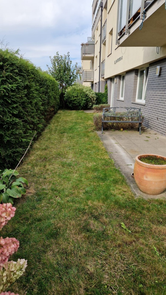 Mieszkanie znajduje się na wysokim parterze, dzięki czemu linia ogrodu jest znacznie powyżej linii chodnika, co z połączeniu z gęstym żywopłotem daje efekt prywatności. Ogród o powierzchni ponad 110m2, z zestawem wypoczynkowym i roślinami dekoracyjnymi.
