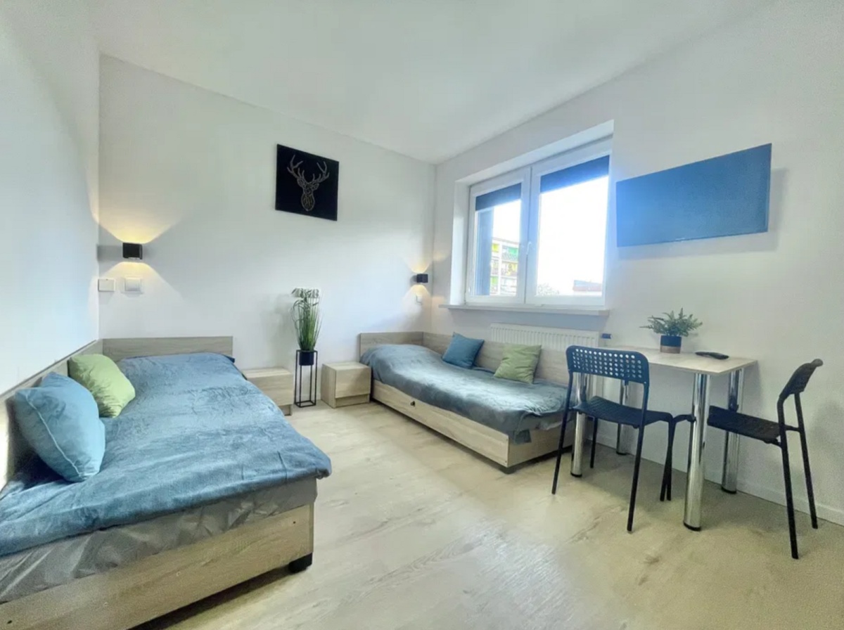 Wynajmę 2-osobowe mieszkanie w Lęborku w nowym budynku położonym 10 minut spacerem od dworca kolejowego i autobusowego.