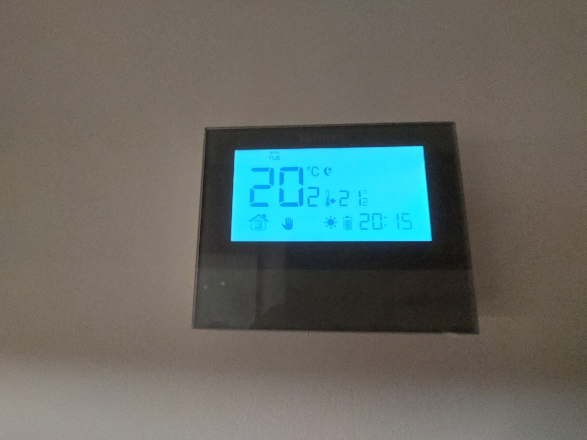 - kocioł kondensacyjny Junkers wraz z panelem sterującym i czujnikiem temperatury w pokoju