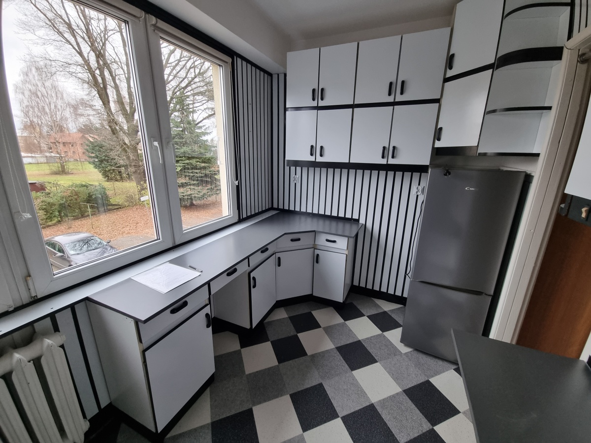 Kuchnia: meble kuchenne, lodówka, kuchenka gazowa