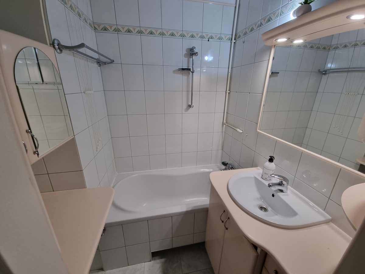 Łazienka: wanna, szafka pod umywalką, dodatkowa szafka, pralka