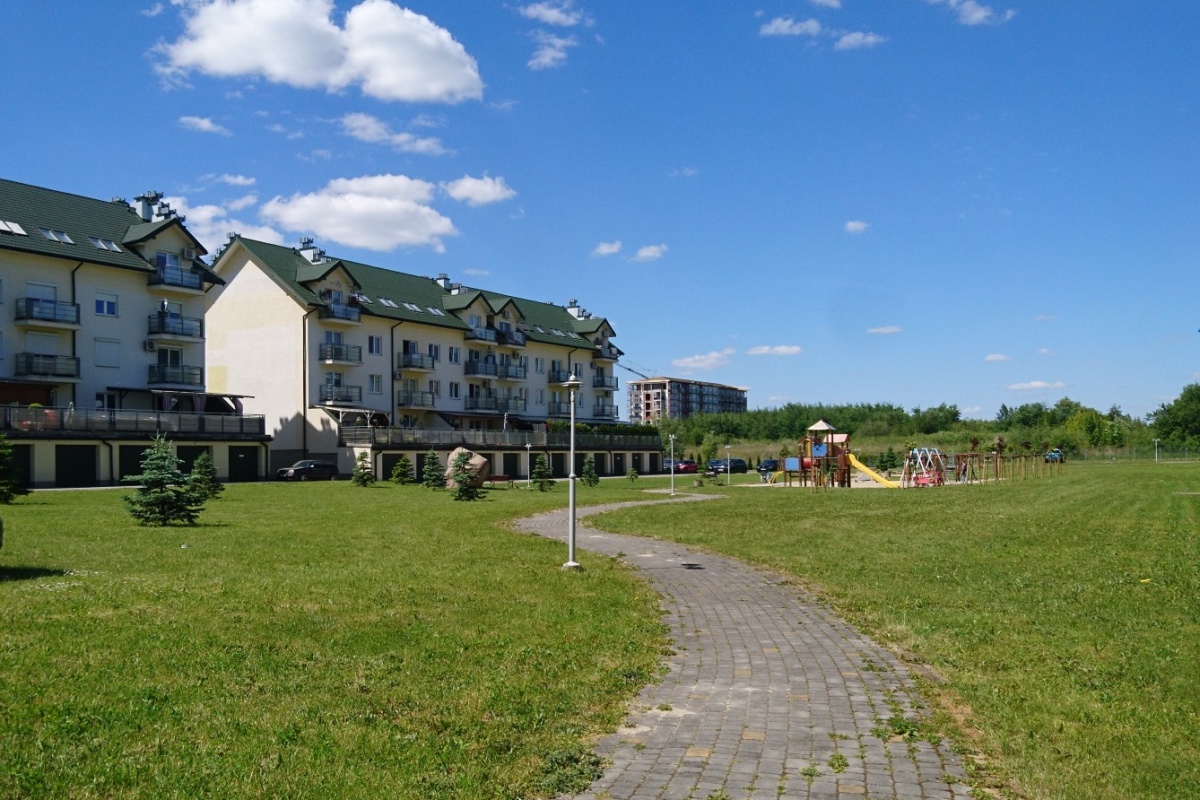 Lokalizacja niedaleko al.Jana Pawła II (wjazd od Westerplatte). Przestronne osiedle, z dużą ilością zieleni, placem zabaw. Parking dla mieszkańców przed blokiem; wejście na osiedle z kilku stron przez zamykane bramki. W pobliżu sklepy, przystanek autobusowy, niedaleko lasek Lipie. Dobre połączenie komunikacyjne z centrum oraz z autostradą A4.
