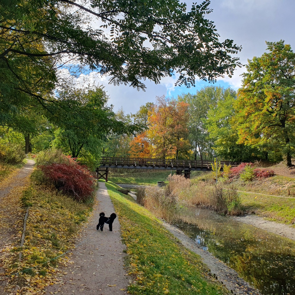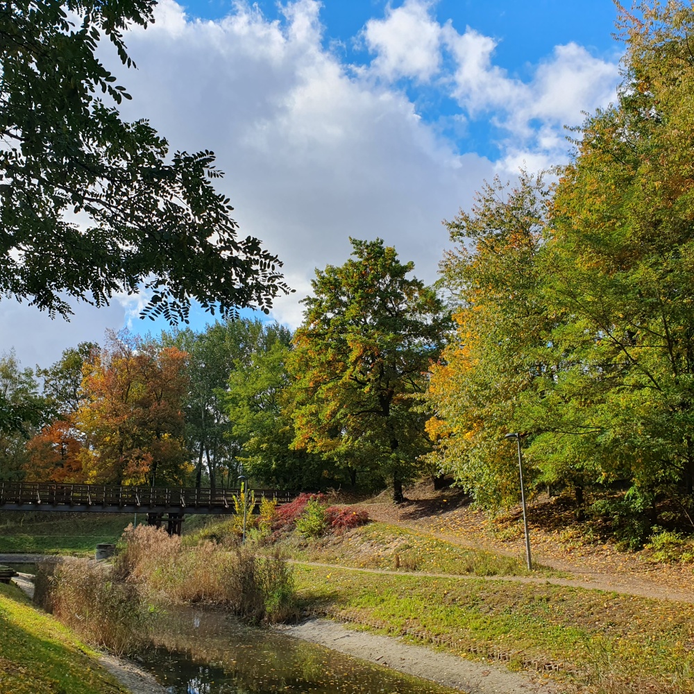 Na zdjęciach mieszkanie oraz park Fort Bema jesienią.