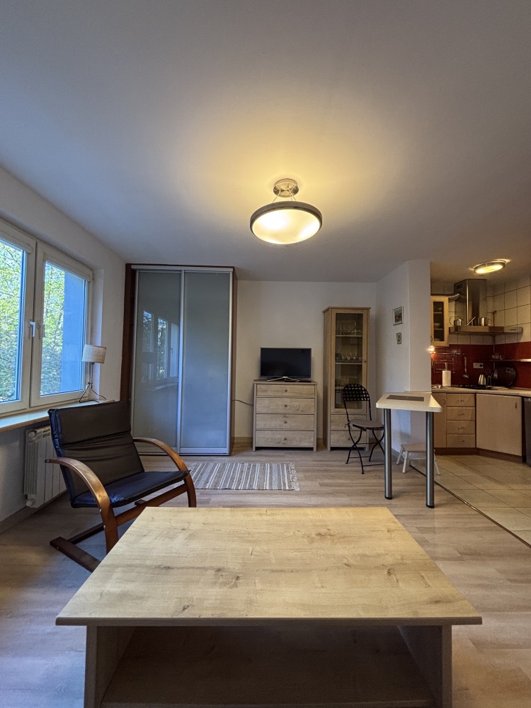 Wynajmę lokal mieszkalny o powierzchni 26, 4 m2. Jest to jeden pokój, kuchnia otwarta na pokój, przedpokój i łazienka. Mieszkanie jest w bardzo dobrej lokalizacji przy ul. Miłej w Warszawie, w dzielnicy Wola, w bliskiej odległości od centrum miasta. W okolicy jest wiele sklepów, aptek, szkoła, przedszkola, basen, dwa centra handlowe (Klif, Arkadia). W pobliżu funkcjonuje komunikacja tramwajowa i autobusowa. Budynek usytuowany jest w spokojnym otoczeniu, wśród zieleni. Został niedawno wyremontowany. Wyremontowano też klatkę schodową, która jest jasna, przestronna i czysta. Ma dwie windy. Do budynku wchodzi się za pośrednictwem kodu i domofonu. Lokal jest na 1 piętrze.