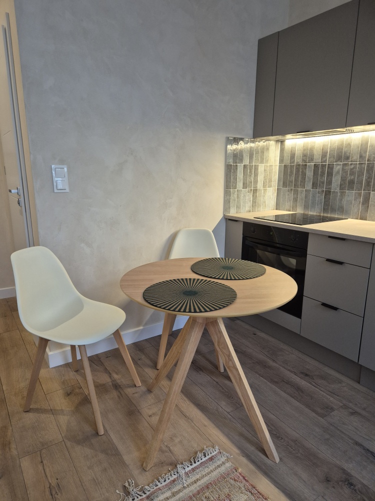 Wynajmę przestronne wysokie mieszkanie z w pełni wyposażonym aneksem kuchennym, przytulnym salonem i dużą sypialnią. Mieszkanie świeżo wykończone, NIKT wcześniej nie mieszkał! Posiada całkowicie nowe meble, w tym ogromną szafę, sprzęty i wyposażenie (jak np. odkurzacz, mop, naczynia, sztućce). Duże drewniane nowe okna zapewniają naturalne światło, mieszkanie jest bardzo jasne, ekspozycja południowa. Ogrzewanie miejskie. Mieszkanie mieści się na trzecim piętrze w kamienicy z ok. 1920 roku, wybudowanej z cegły.