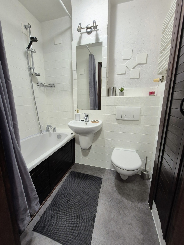 Układ: salon, sypialnia/2 pokój (istnieje możliwość wstawienia łóżka 140 x 200 cm), oddzielna kuchnia, przedpokój, łazienka, przyjemna loggia z systemem rozsuwanych okien. Mieszkanie jasne, czyste, wyposażone, gotowe do zamieszkania. Wydaje się być większe, niż jest. Posiada dużo miejsca do przechowywania rzeczy - specjalne schowki, duże pojemne szafy.