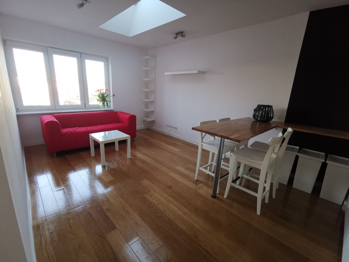 - Sypialnia, salon z aneksem kuchennym i oknem w suficie