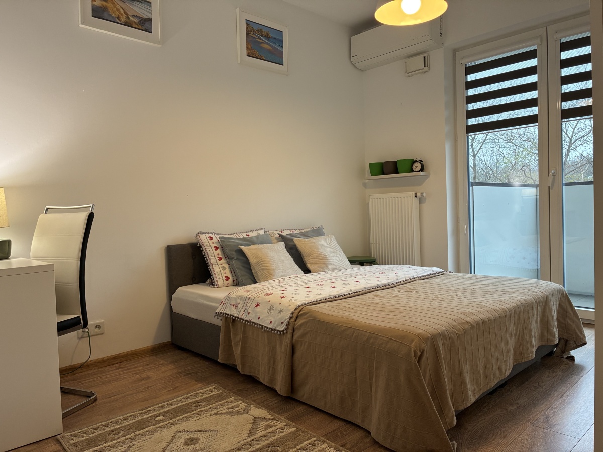 Na najem okazjonalny nowoczesne, w pełni wyposażone, słoneczne 2-pokojowe mieszkanie o powierzchni 42,90 m² plus obszerny balkon 9,53m2, położone na 1 piętrze w 4-piętrowym budynku z 2016 roku, w prestiżowej inwestycji Dom Development - Żoliborz Artystyczny.