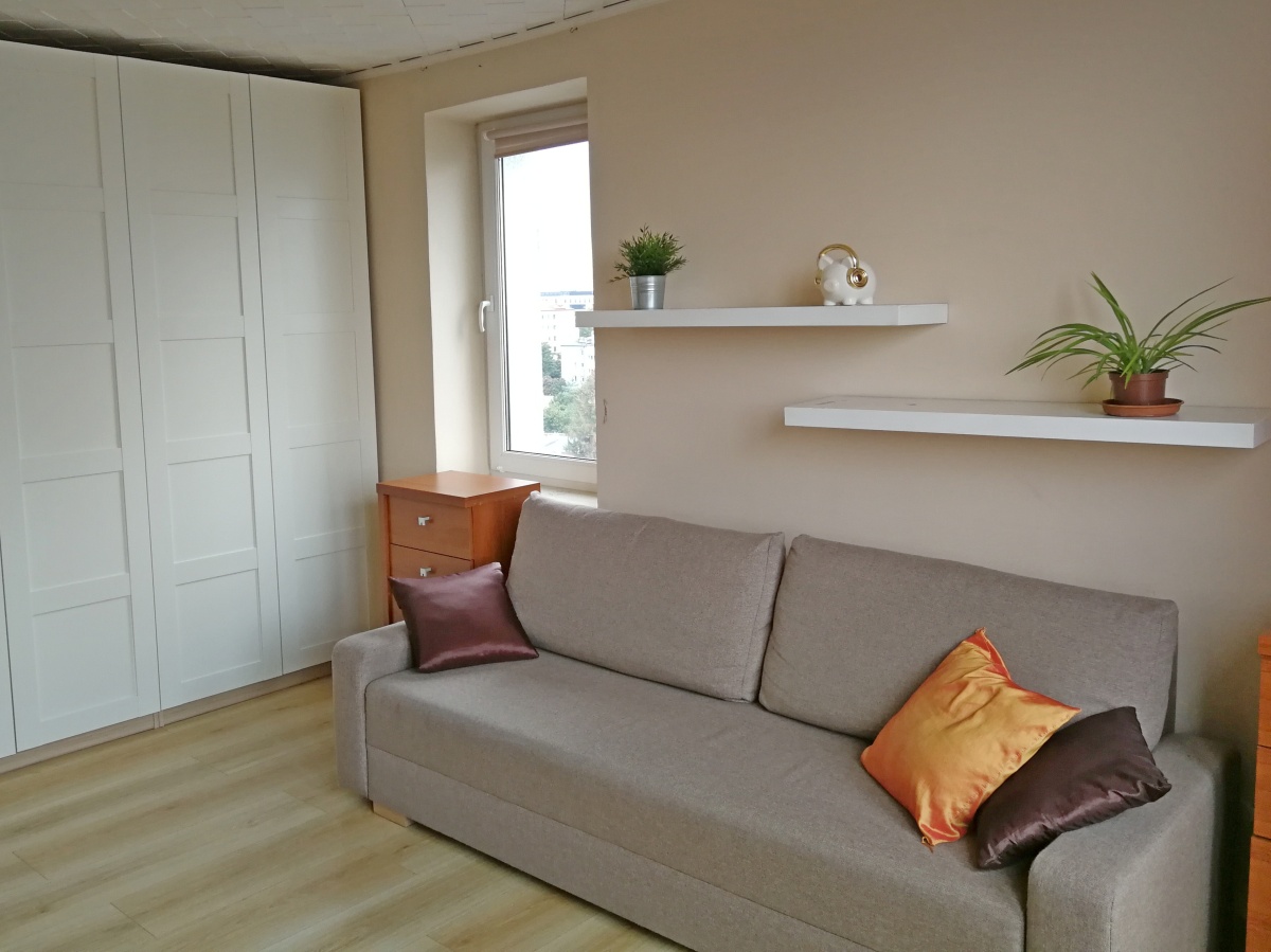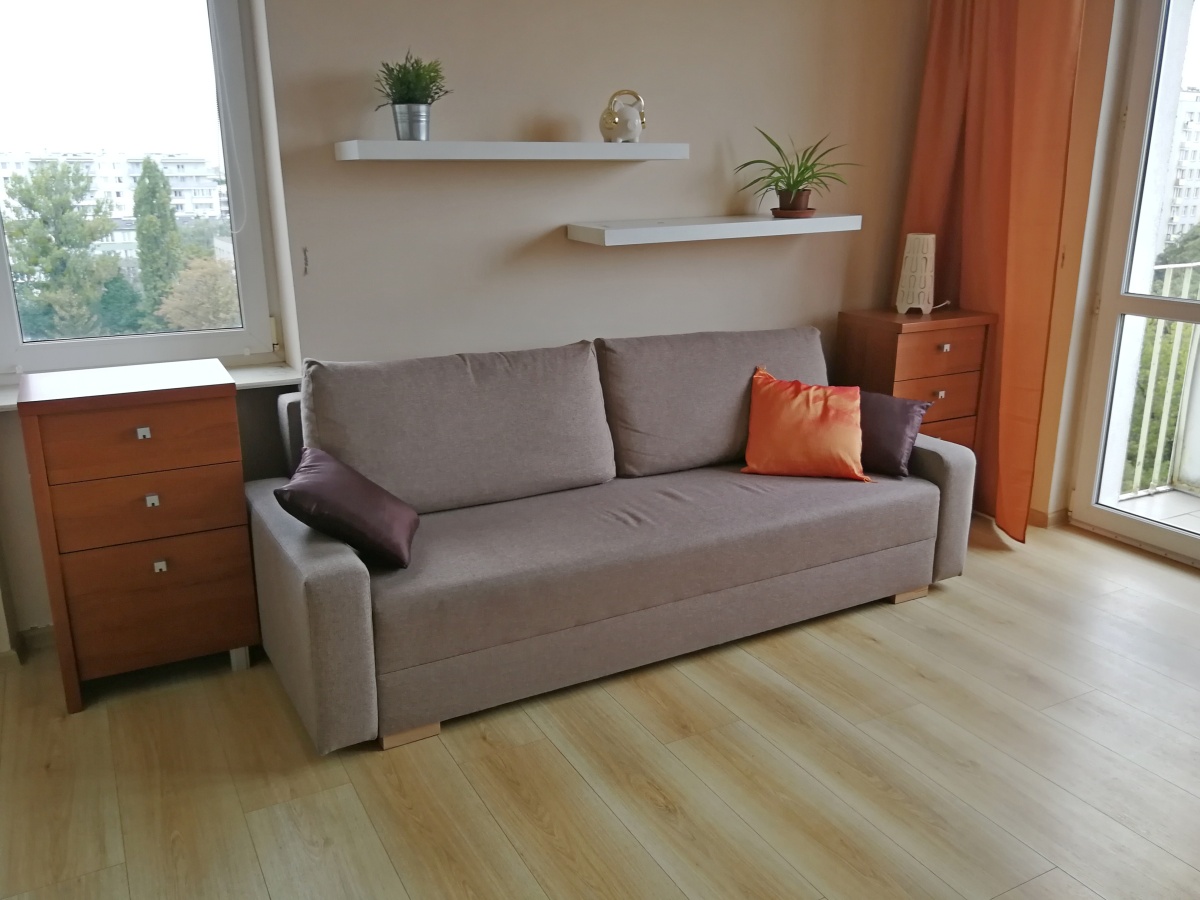 Łóżka w każdym pokoju lub kanapy. W razie potrzeby można dostawić dowolne dodatkowe łóżka lub zamienić podwójne łóżka na pojedyncze. Z okien piękny widok na panoramę Mokotowa.