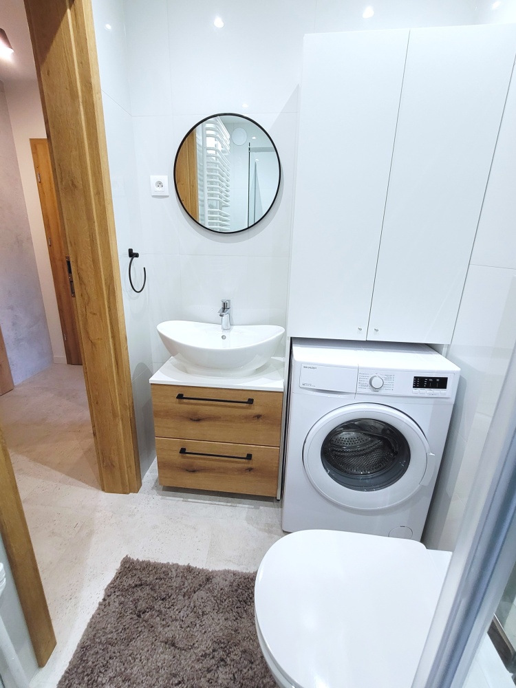 COMFORTABLE 3 rooms with built-in loggia, 50 m2. For living or business, office, office, office, etc...! The apartment is quiet and very well lit with daylight. EXCELLENT location, close to the Płock METRO, perfect public transport, tram, bus, metro and railway lines on site. Beautiful GREEN surroundings, numerous parks - Moczydło, Szymańskiego, multimedia fountains, summer cinema, amphitheater, concerts... An ideal place for people who value contact with nature and active recreation. Full infrastructure, close to Arkdia Shopping Center, Wola Park Shopping Center, Blue City, etc... The apartment has undergone a major renovation, using high-quality materials, stoneware and wood floors, GROHE, Wileroy & Boch and FRANKE fittings. . The apartment includes a basement. Price PLN 4,900 + PLN 750 administration fee + PLN 100 electricity Deposit PLN 7,000 Equipment: - TV - dishwasher - oven - fridge-freezer - induction hob - washing machine The kitchen is equipped with basic utensils. The rest of the furniture according to the tenant's needs.