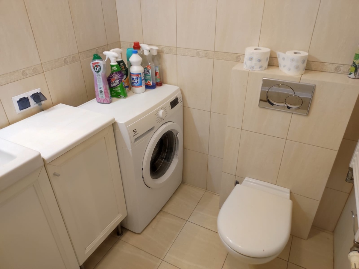 Pełne wyposażenie w sprzęt AGD. Nowa 2 m lodówka. Pralka. Płytka gazowo-elektryczna. Mieszkanie na strzeżonym osiedlu z pięknym widokiem na zielone tereny, zabytkowy starodrzew. W okolicy sklepy (Biedronka, Żabka, DH Tarchomin itp.), apteka, plac zabaw, przedszkole i autobus do Metra (17 min.) . Możliwość podłączenia Internetu.