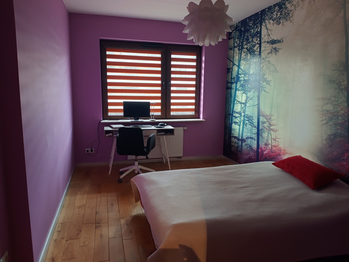 Wynajmę mieszkanie dwupokojowe 56 metrów ( salon z aneksem kuchennym z pełnym wyposażeniem) w nowoczesnym budynku na zamkniętym i monitorowanym osiedlu z ochroną fizyczną obok Promenady. Łazienka z prysznicem i z pralką, w korytarzu jest szafa w zabudowie. Do mieszkania przynależy komórka lokatorska 2,6 m na tej samej kondygnacji, balkon z widokiem na zielone patio i miejsce parkingowe w garażu podziemnym. Koszt wynajmu 4400zł plus opłaty miesięcznie ( czynsz, energia)