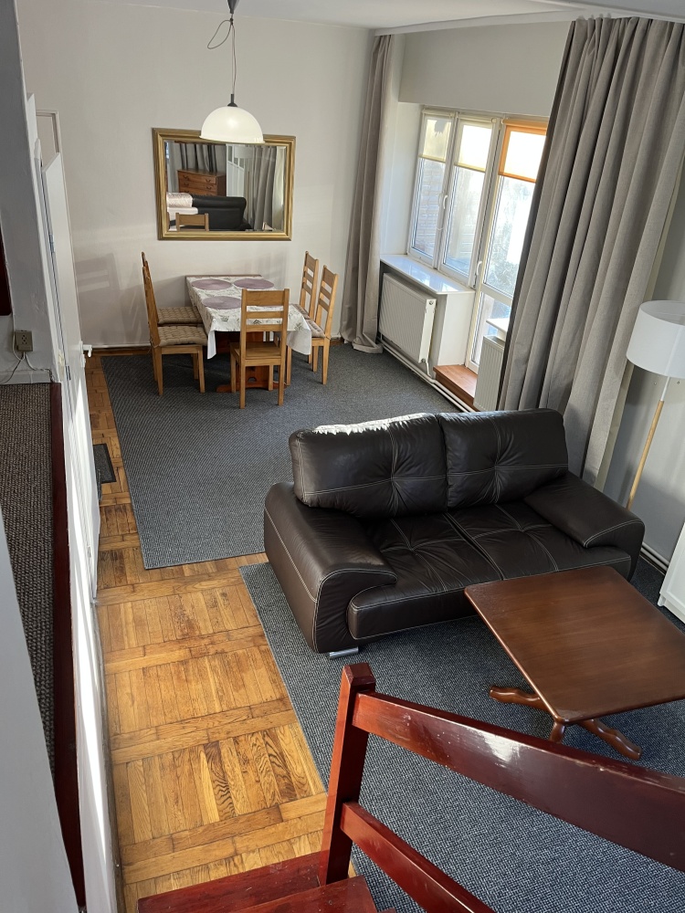 Mieszkanie typu studio , osobne wejście, osobne licznik elektryczny w domu dwulokalowym do wynajęcia od zaraz. Mieszkanie o powierzchni 70 m.kw jest położone na trzech poziomach i ma przestrzeń otwartą, schody wewnętrzne - widoczne na zdjęciach, wysokość mieszkania wynosi 3,5 metra! Na parterze mieści się kuchnia otwarta na salon, osobne wc i łazienka oraz wyjście na taras o pow. 14 m.kw. Dwie pozostałe pomieszczenia mają po 13 - 16m. kw. są zlokalizowane na wyższych poziomach. Na podłodze drewniana klepka i wykładziny dywanowe. Dzięki grubym murom z cegły w mieszkaniu panuje doskonały klimat i nawet w wielkie upały jest chłód bez potrzeby klimatyzacji.