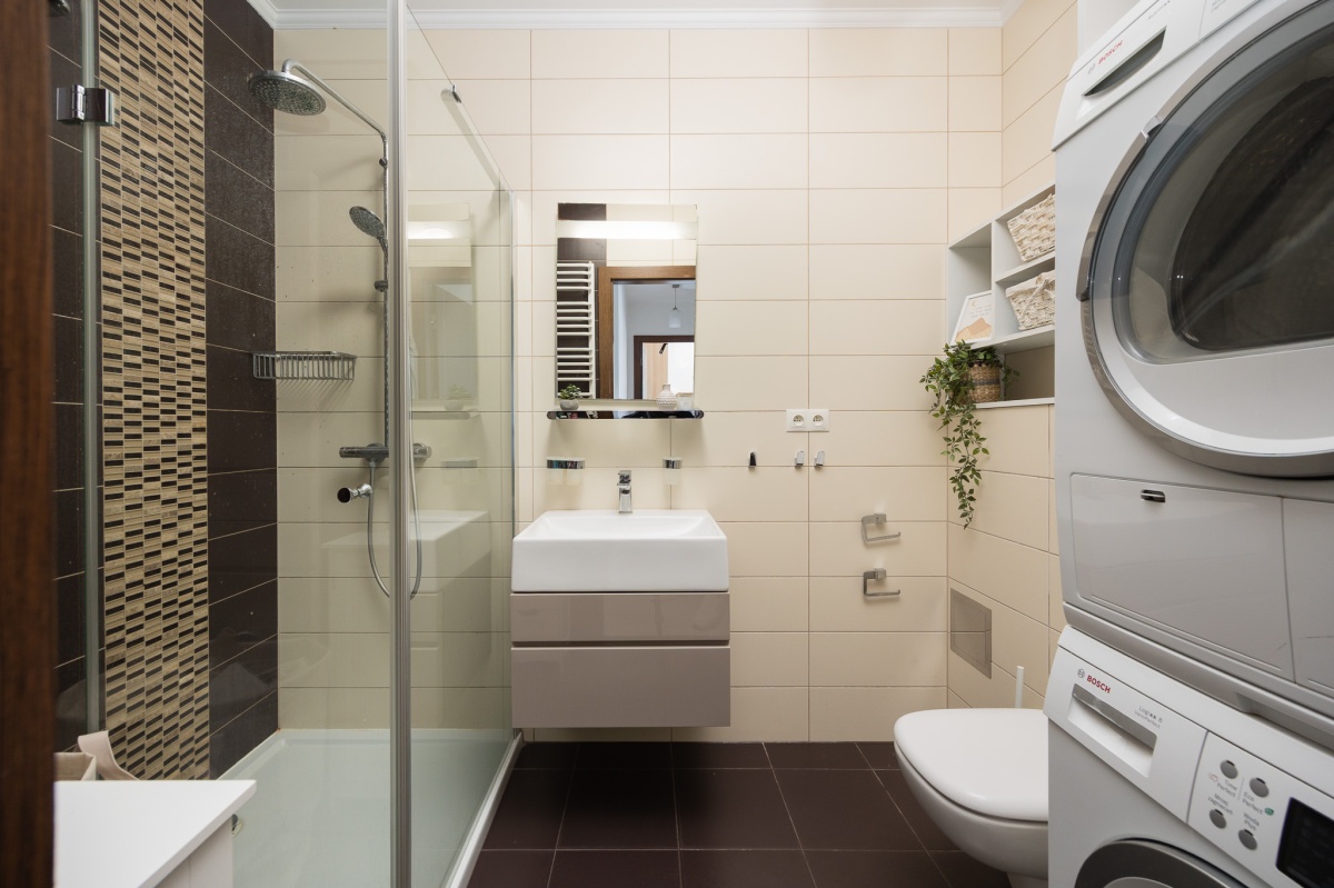 W łazience pralka i suszarka Bosch